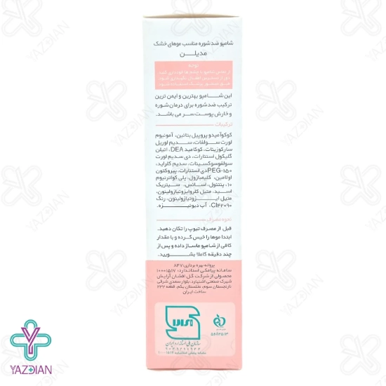 شامپو ضد شوره مدیلن مناسب موهای خشک حاوی ماده موثر زینک پریتیون و پلی کواترنیوم ۱۰ که علاوه بر قدرت پاک کنندگی بالا باعث پیشگیری و درمان شوره ی سر می شود.