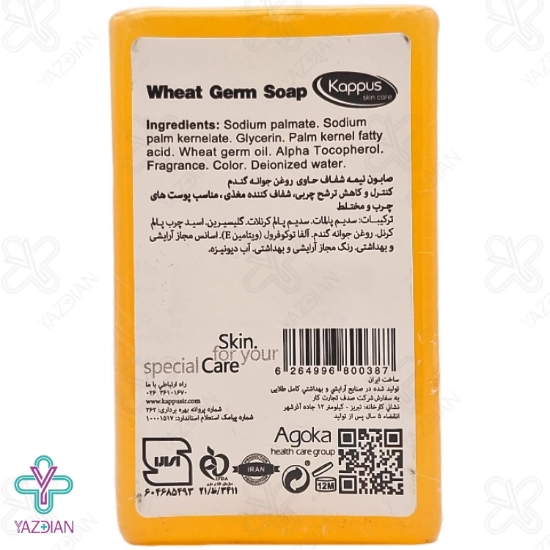 صابون جوانه گندم کاپوس مناسب پوست های چرب و آکنه ای (Kappus Wheat Germ Soap For Oily And Acne Skins 125 g ) با دارا بودن عصاره گیاهی جوانه گندم، جوش های زیر پوستی را برطرف کرده و به دلیل دارا بودن گلیسیرین، رطوبت را در پوست نگه می دارد و استفاده از آن برای پوست های چرب و آکنه ای مناسب می باشد.