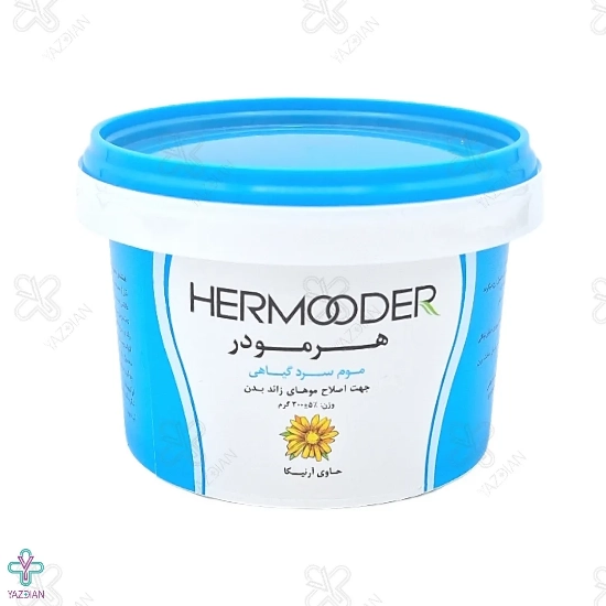 موم سرد گیاهی هرمودر حاوی عصاره آرنیکا، با خاصیت ضد باکتری و ضد قارچ، مسکنی قوی و طبیعی بوده و در اپیلاسیون به کار برده می شود. برای نابود کردن موهای زاید زیر بغل، دست و پا می توان از این محصول استفاده کرد و آن ها را از ریشه از بین برد.