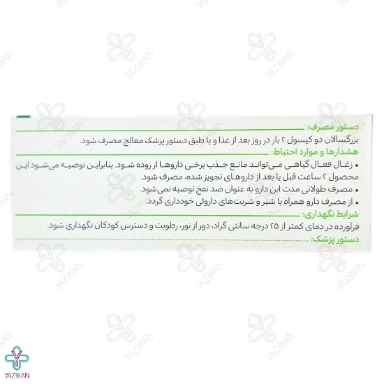 استفاده این کپسول گیاهی برای افراد زیر ۱۸ سال منع مصرف داشته و توصیه نمیشود، مگر در صورت صلاح دید پزشک.