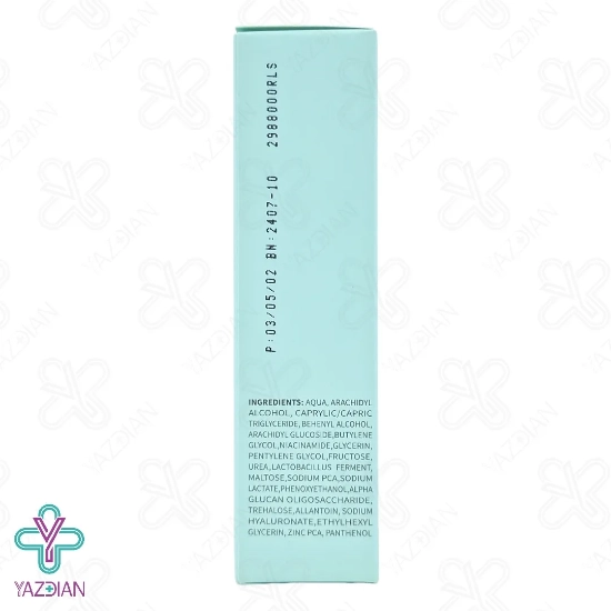 هیالورونیک اسید یکی از ترکیبات موجود در این محصول می باشد که با آب رسانی پوست مانع از ایجاد چین وچروک شده و از ایجاد خطوط ریز بر روی پوست جلوگیری کرده و خاصیت کشسانی پوست را افزایش داده و در از بین بردن سلول های مرده پوست و کاهش جوش وآکنه نیز موثر می باشد، نیاسین آمید نیز از دیگر ترکیبات این محصول می باشد که استحکام پوست را افزایش داده و از خشکی و پوسته پوسته شدن آن جلوگیری می کند این ماده سد لیپیدی پوست را تقویت کرده و موجب حفظ رطوبت پوست شده و با دارا بودن خواص ضد التهابی و التیام بخشی مانع از ایجاد بیماری های پوستی می شود، پرو بیوتیک موجود در این محصول علاوه بر کاهش التهابات پوست از بروز جوش و آکنه نیز جلوگیری می کند.