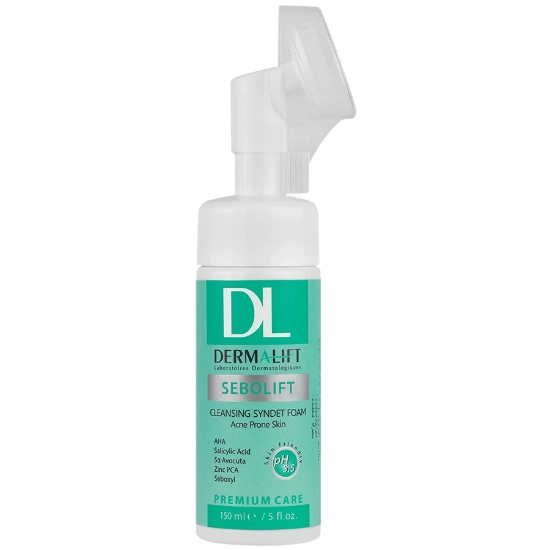 فوم شستشوی صورت براش دار پوست چرب درمالیفت - 150 میلی لیتر (Dermalift Sebolift Cleansing Syndet Foam 150 ml) با فرمولاسیون ویژه و تخصصی ای که دارد، به صورت کامل و اصولی پوست را از انواع آلودگی ها، چربی های اضافه و میکاپ پاکسازی کرده و قادر به حذف سلول های مرده از روی پوست صورت می باشد. عدم بهره گیری از مواد صابونی در فرمولاسیون این فوم سبب برتری آن شده است. چرا که صابونها دارای PH قلیایی می باشند و در ساختار طبیعی پوست تغییر ایجاد می کنند. در صورت استفاده مستمر از مواد صابونی، پوست به مرور دچار خشکی، پوست پوست شدن و زبری خواهد شد.