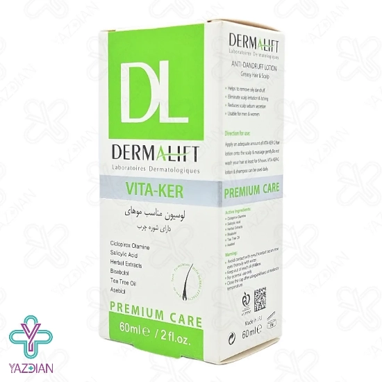 لوسیون ضد شوره چرب ویتاکر درمالیفت - 60 میلی لیتر (Dermalift Vita Ker Greasy Anti Dandruff Lotion ۶۰ ml) با بهره گیری از ترکیبات مفید و موثر از جمله سیکلو پیروکس اولامین و سالیسیلیک اسید، به خوبی شوره های چرب سر را از بین می برد و حافظ زیبایی و سلامت مو هاست. این لوسیون حاوی ترکیبات با خاصیت ضد قارچی و ضد باکتریایی می باشد که شوره های مقاوم به درمان را نیز از بین می برد و خارش و التهابات ناشی از شوره را نیز تسکین می بخشد. ویژگی های منخصر به فرد این لوسیون، این محصول را به یک محصول مراقبت از مو تخصصی تبدیل کرده است.