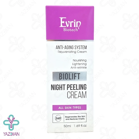 کرم لایه بردار شب انواع پوست اورین - 50 میلی لیتر (Cream Night Peeling Evrin 50ml) از دسته محصولات مراقبت از پوست می باشد که  آنزیم های لایه بردار طبیعی پوست را فعال کرده و سلول های مرده پوست را حذف و پاکسازی می کند. با این کار سلول های جوان جایگزین سلول های مرده پوست شده و پوستی شاداب را برای فرد ایجاد می کند. بعلاوه استحکام و انعطاف پذیری پوست ر ادو چندان می کند.