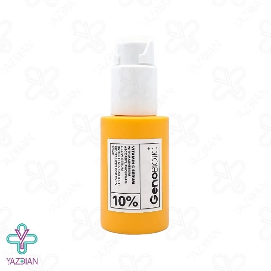 سرم ویتامین ث ژنوبایوتیک - 12 میلی لیتر (Genobiotic Vitamin C Ascorbic Acid Serum 12 ml) با بهره گیری از آسکوربیک اسید ۱۰% به فرم پودری، یک فرمولاسیون منحصر به فرد و قدرتمند جهت حفظ سلامت و مراقبت از پوست دارد و قابل استفاده برای تمامی انواع پوست می باشد. این سرم با بازسازی و ترمیم سلول های آسیب دیده پوستی، باعث محوسازی جای زخم و آکنه می شود. بهره گیری از ویتامین سی در این محصول سبب شده است تا کلاژن سازی پوست تحریک شده و باعث رفع چین و چروک های پوستی و افزایش خاصیت ارتجاعی می شود. بعلاوه یک لایه آنتی اکسیدانی قدرتمند روی پوستی ایجاد می کند که بدین صورت از پوست در برابر عوامل رادیکال های آزاد حفاظت بالایی به عمل می آورد. در صورت استفاده مداوم و منظم این فراورده شاهد پوستی صاف، یکدست و شفاف تر خواهید بود.