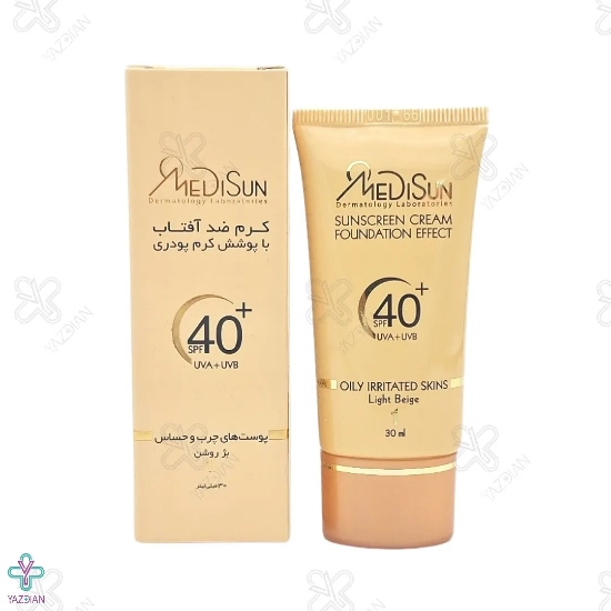 کرم ضد آفتاب SPF 40 مدیسان پوشش کرم پودری پوست چرب و حساس - بژ روشن