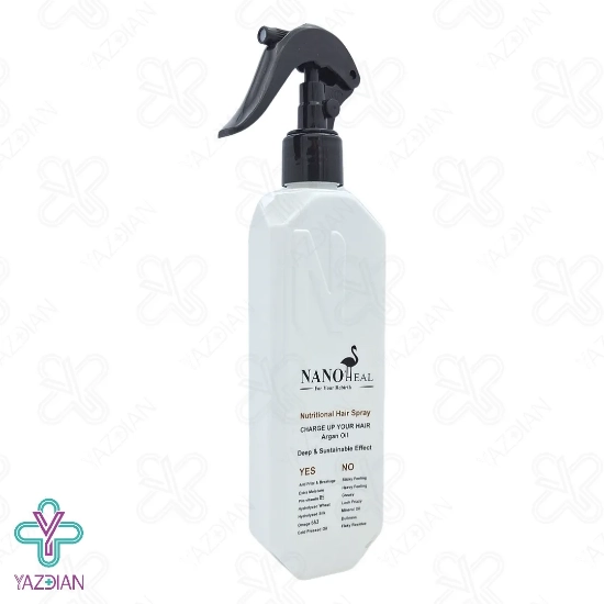 اسپری تقویت کننده مو روغن آرگان نانوهیل - 270 میلی لیتر (Nano Heal Argan Oil Daily Nutritional Spray 300ml) با بهره گیری از ترکیبات منحصر به فرد و ارزشمندی مثل عصاره آلوئه ورا، پروتئین هیدرولیز شده گندم و ابریشم، روغن آرگان و روغن جوجوبا ، موها را آبرسانی و مرطوب کرده و از خشکی، وزی و شکنندگی آن ها جلوگیری می کند. بعلاوه استحکام و قوام موها را دو چندان می کند و ساقه موها را در برابر اشعه مخرب فرابنفش ایمن می سازد. این محصول قابلیت استفاده روزانه را دارد و یکی از محبوب ترین محصولات مراقبت از مو ها می باشد.