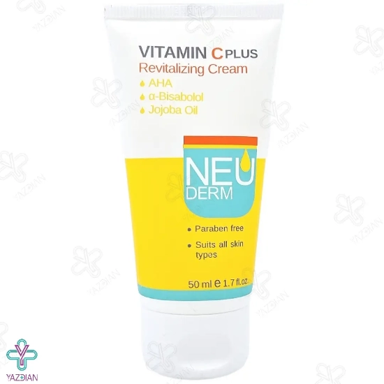 کرم روشن کننده ویتامین ث نئودرم (Neuderm Revitalizing Vitamin C Plus Cream 50 ml) با دارا بودن ویتامین های C، A و E به همراه روغن جوجوبا در ترکیبات خود می تواند پوست را به خوبی روشن کرده و بازسازی کلاژن در پوست را تحریک کند و به واسطه آن قوام پوست را افزایش داده و باعث جوان سازی پوست شود.