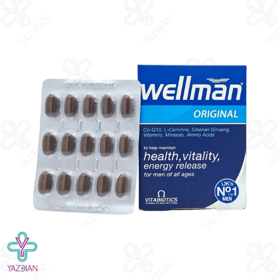 قرص مولتی ویتامین آقایان ول من اورجینال ویتابیوتیکس (Vitabiotics Wellman Original 30 Tabs) به عنوان یکی از داروهای تقویت قوای جسمی مردان با هدف تأمین نیازهای روزانه آقایان تهیه شده است و دارای انواع مواد مغذی نظیر انواع ویتامین ها، مواد معدنی، عصاره جینسینگ و اسید های آمینه بوده و می تواند قدرت و سطح انرژی آقایان را ارتقا بخشیده و سلامتی و شادابی آنان را افزایش دهد.