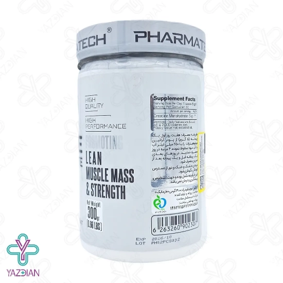 پودر کراتین منوهیدرات فارماتک (Pharma Tech Creatine Monohydrate Powder 300 g) یک مکمل عالی برای عضله سازی و افزایش توان بدنی در ورزشکاران است. کراتین کمک می کند تا انرژی زیادی در بدن شما تولید شود و شما با این انرژی اضافه می توانید بهتر و موثرتر از قبل ورزش کنید و در نتیجه زودتر و بهتر به اندام ایده آل خود برسید. بعلاوه کراتین از تجمع اسید لاکتیک در عضلات جلوگیری می کند و از این طریق در رفع خستگی و درد ورزش موثر است. کراتین احیا کننده ذخیره گلیکوژنی است و می تواند با بالا بردن آن موجب افزایش حجم عضلات شود.