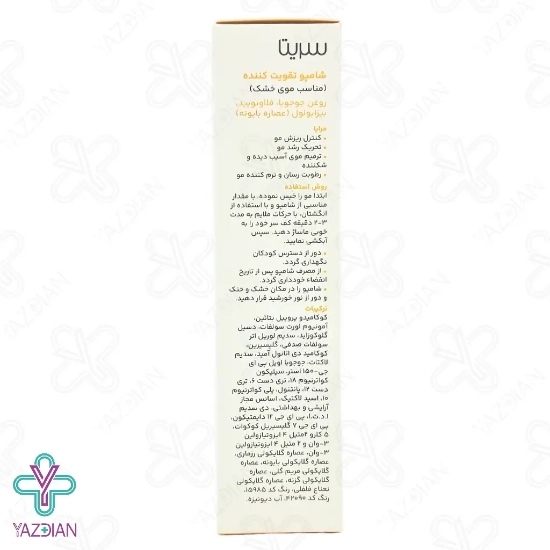 شامپو تقویت کننده و ضد ریزش موی خشک سریتا یک نوع شامپو است که برای تقویت و ضد ریزش موهای خشک و آسیبدیده طراحی شده است. این شامپو شامل ترکیباتی است که به طور خاص برای تقویت ریشههای مو و جلوگیری از ریزش موها و آسیب دیدگی شانهها و پوست سر مناسب است.