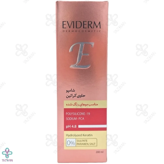 شامپو کراتینه موهای رنگ شده فاقد سولفات اویدرم 200 میلی لیتریک محصولی موثر جهت تثبیت رنگ مو – بهبود کراتین سازی – افزایش نرمی ساقه است.