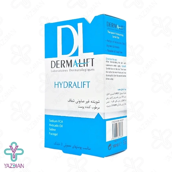 پن شفاف مرطوب کننده هیدرالیفت درمالیفت مناسب پوست معمولی تا خشک Dermalift Hydralift Transparent Moisturizing Syndet Bar For Normal And Dry Skins شوینده صورت و بدن غیر صابونی و ملایم برای پوست های خشک و معمولی است؛ PH آن سازگار با پوست بوده و پاک کننده آلودگی، چربی و مواد آرایشی از سطح پوست است.