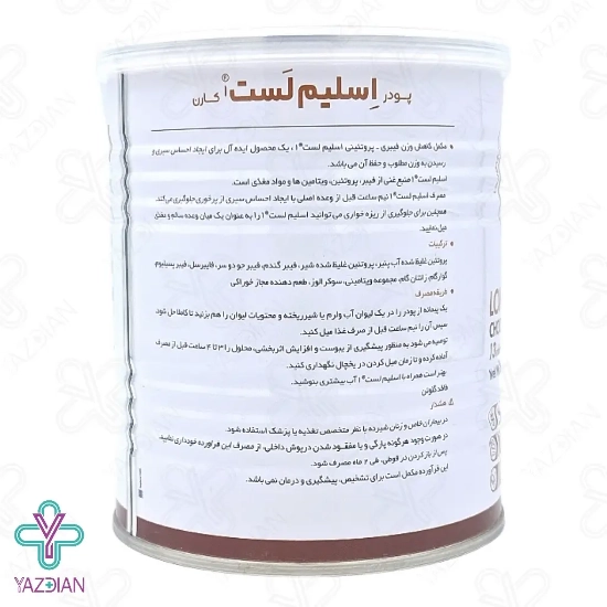 پودر کاهش وزن اسلیم لست شکلاتی کارن (Karen Slim-Last-1 Pro. Fiber 300 g) با هدف کاهش وزن فیبری – پروتئینی تهیه شده است و به عنوان یک مکمل غذایی ایده آل مورد استفاده قرار می گیرد و اشتها و وزن را کاهش داده و وزن مطلوب بدن را حفظ می کند.