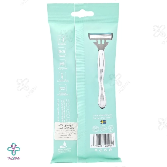 خودتراش مردانه سه لبه افکس مدل فالکون - 4 عددی (afex falcon razors) دارای سه لبه نزدیک به هم حرفه ای می باشد که اصلاح پوستی آسان و تمیز را با آن تجربه خواهید کرد. هر تیغ دارای نوار روان کننده می باشد که اصلاح را صاف و یکدست می کند. دسته این تیغ ضد لغزش است و یکی از آسان ترین روش ها جهت از بین بردن موهای زائد صورت و بدن می باشد. سری چرخشی این خود تراش سبب شده است تا از بین بردن موهای زائد آسان شود و این تیغ چند بار مصرف باشد. در نوار های این تیغ عصاره آلوئه ورا بکار برده شده است و سبب می شود تا رطوبت رسانی به پوست انجام شود و خاصیت ضد التهابی فوق العاده ای هم داشته باشد.