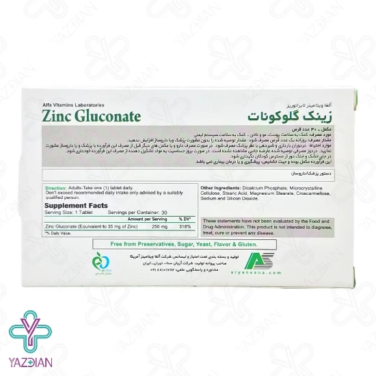 قرص زینک گلوکونات آلفا ویتامینز - 30 عددی