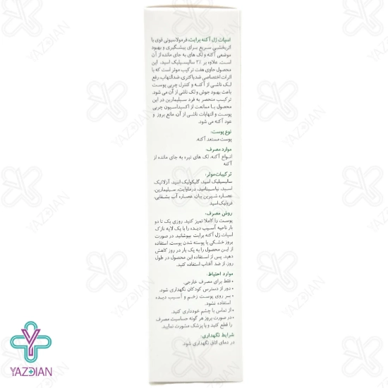 ژل آنتی آکنه اسپات آکنه برایت مکس حاوی سالیسیلیک اسید – 15 میلی لیتر (Bright Max Spot acne Anti – Acne gel with salicylic acid – 15 ml) دارای فرمولاسیون منحصر به فردی است که ضمن پیش گیری از آکنه موجب بهبود موضعی آکنه و لک های به جای مانده از آن می شود ترکیبات به کار رفته در این محصول دارای اثرات ضد باکتری و ضد التهاب می باشد که موجب رفع آکنه و کنترل چربی پوست شده و در نتیجه موجب بهبود جوش و لک می شود. سالیسیلیک اسید موجود در این محصول سلول های مرده پوست را لایه برداری کرده و موجب رفع انسداد منافذ باز می شود و در نتیجه ضمن کاهش آکنه از بروز آن پیش گیری می کند و با خاصیت ضد باکتری که دارد موجب کاهش و رفع باکتری های مولد آکنه می شود اسید گلیکولیک موجود در این محصول ضمن لایه برداری سلول های مرده پوست از تجمع چربی اضافی بر روی پوست جلوگیری کرده و مانع از رشد و تکثیر باکتری های مولد جوش می شود آز لائیک اسید موجود در این محصول دارای خاصیت ضد التهابی و ضد میکروبی بوده که از بروز آکنه پیش گیری کرده و از تولید بیش از حد ملانین جلوگیری می کند و در نتیجه موجب کمرنگ شدن لک ها و تیرگی های جای آکنه میش ود سیلیمارین با خاصیت آنتی اکسیدانی که دارد اثرات مخرب رادیکال های آزاد را خنثی کرده و در نتیجه موجب جلوگیری از بروز پیری زود رس و بروز چین و چروک می شود نیاسینامید موجود در این محصول دارای خاصیت روشن کنندگی و ترمیم کنندگی می باشد که رنگ و بافت پوست را بهبود می بخشد و عصاره شیرین بیان موجود در این محصول با خاصیت ضد التهابی، ضد میکروبی و آنتی اکسیدانی که دارد موجب کم رنگ شدن تیرگی های ایجاد شده در اثر آکنه می شود.