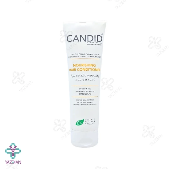 نرم کننده موهای خشک و آسیب دیده کاندید (Candid Nourishing Hair Conditioner For Damaged and Colored hair 150 ml) یکی از بهترین نرم کننده مو در داروخانه هاست و سبب آب رسانی عمقی و تغذیه ی مو می شود. این محصول از مو در مقابل انواع آسیب ها مثل رنگ کردن و عوامل محیطی حفاظت کرده و هم چنین استفاده ی مداوم از آن سبب بهبود کیفیت و دوام رنگ موهای رنگ شده می شود. از دیگر ویژگی های این نرم کننده این است که باعث افزایش شانه پذیری موها شده و درخشش طبیعی آن را نیز زیاد می کند.