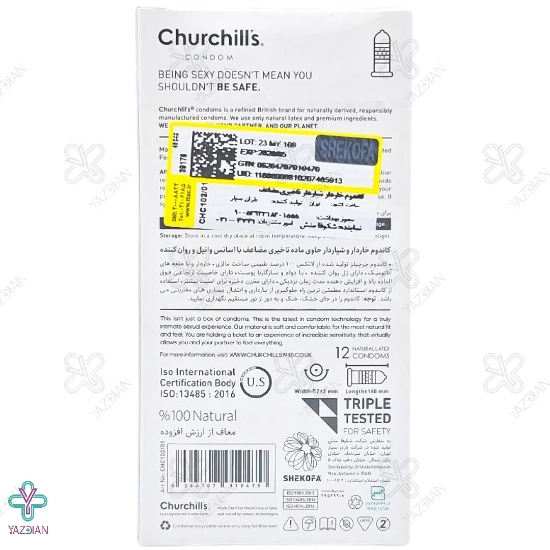 کاندوم تأخیری چرچیلز (Churchills Delay Condom 12 PCS) از لاتکس صد در صد طبیعی ساخته شده و با دارا بودن ماده تأخیری دو برابر، مانع از انزال زودرس می شود.