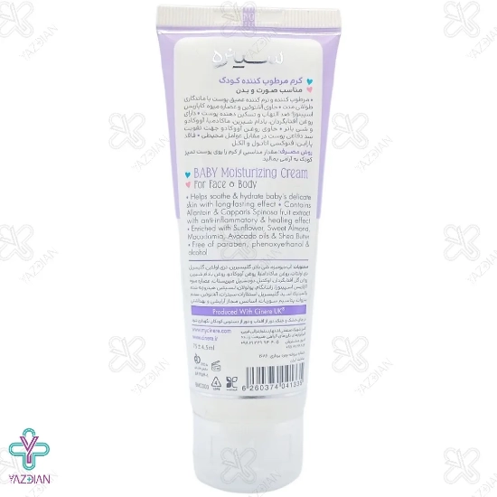 کرم مرطوب کننده صورت و بدن سینره ( Cinere Baby Moisturizing) با دارا بودن ترکیباتی گیاهی نظیر روغن آووکادو و بادام شیرین می تواند پوست صورت و بدن کودکان بالای 3 سال را تقویت کرده و سلامتی و شادابی آن را تضمین نماید.