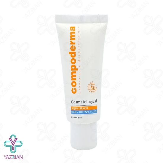 فلوئید ضد آفتاب SPF50 پوست معمولی و خشک کامپودرما - بی رنگ (Compoderma Spf۵۰ Sunscreen Cream For Dry Skin ۴۰ ml) پوست شما را در برابر آسیب های ناشی از نور خورشید ایمن ساخته و از بروز پیری زودرس پوست جلوگیری می کند. بعلاوه آبرسان و مرطوب کننده پوستی نیز می باشد و از بین برنده ترک و خشکی های پوستی است. SPF مناسب و بالای این محصول سبب شده است تا محافظت بالایی در برابر اثرات مخرب UVB و UVA ایجاد شود.