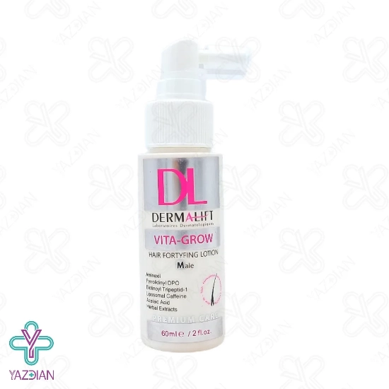 لوسیون تقویت کننده موی سر آقایان ویتا گرو درمالیفت - 60 میلی لیتر (Dermalift Vita Grow Hair Men Fortifying Lotion ۶۰ Ml) از دسه محصولات مراقبت از مو می باشد که با بهره گیری از موثرترین و به روز ترین فرمولاسیون، فولیکول های ضعیف و آسیب دیده را تقویت و تغذیه رسانی می کند و با ایجاد تعادل در میزان ترشح چربی از غدد چربی سر، از ریزش موی سر در اثر علل مختلف پیشگیری می کند. این لوسیون سبب افزایش ضخامت تار های مو می شود و به آن ها استحکام و قوام بیشتری می بخشد.