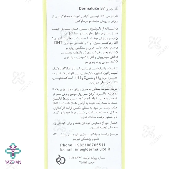 لوسیون تقویت مو درمالوکس برای جلوگیری از ریزش مو و رشد دوباره ی آن کاربرد دارد.