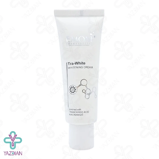 کرم ضد لک روز تراوایت امونی - 50 میلی لیتر (Emoni Tra White Whitening Cream ۵۰ ml) از دسته محصولات روشن کننده و ضد لک می باشد که با بهره گیری از نیاسینامید، ترانگزامیک اسید، روغن هسته انگور، لاکتیک اسید و مشتقات ویتامین C از بین برنده عالی لک و تیرگی های پوستی می باشد و پوستی صاف، شفاف و یکدست را به شما هدیه می دهد. این کرم خاصیت لایه برداری ندارد و بدین خاطر باعث ایجاد حساسیت نمی شود. این محصول قابل استفاده روزانه می باشد و در نتیجه در صورت استفاده منظم از این کرم طی 4 هفته، شاهد نتایج حاصل از این کرم خواهید بود.