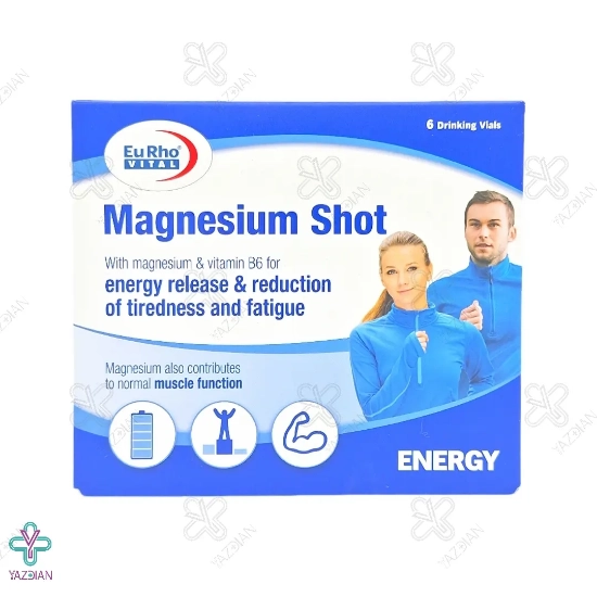 ویال خوراکی منیزیم شات یوروویتال (Eurho Vital Magnesium Shot 6 Dirinling Vials) دارای دو ترکیب ارزشمند و مؤثر نظیر منیزیم و ویتامین B6 بوده و می تواند ضمن بالا بردن میزان انرژی و کاهش خستگی، گرفتگی های عضلانی را برطرف کرده و عملکرد سیستم عصبی را بهبود ببخشد و به طور کلی یکی از بهترین داروهای تقویتی بدن محسوب می شود.