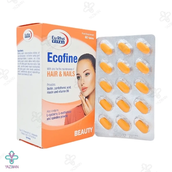 قرص تقویت پوست مو اکوفاین یوروویتال (Eurhovital Ecofine 60 Tablets) دارای ترکیبات مؤثری بوده و می تواند پوست، مو و رشد ناخن را تقویت نماید. همچنین با مصرف این مکمل، سیستم ایمنی بدن تقویت شده و از ابتلا به انواع بیماری ها جلوگیری به عمل می آید.