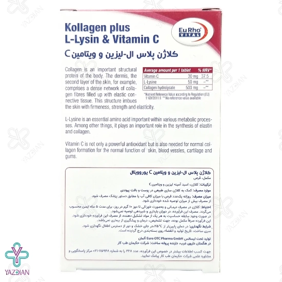 قرص کلاژن پلاس ال لیزین و ویتامین ث یوروویتال (EuRhoVital Kollagen Plus L Liysin And Vitamin C 60 Tablets) با دارا بودن کلاژن هیدرولیزات، ال لیزین و ویتامین C در ترکیبات خود می تواند تولید کلاژن در پوست را افزایش داده و ضمن حفظ و بهبود سلامت پوست و بافت های پیوندی، باعث کاهش چین و چروک های پوست شود و همچنین خاصیت کشسانی آن را ارتقا بخشد.