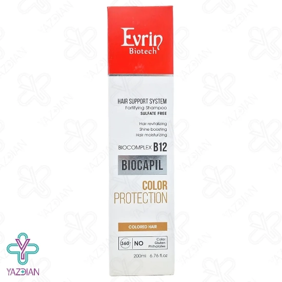 شامپو فاقد سولفات موهای رنگ شده اورین - 200 میلی لیتر(Evrin Biotech Fortifying Shampoo For Colored Hair 200ml) از دسته محصولات مراقبت از موها می باشد که با بهره گیری از بایوکمپلکس B12، به خوبی موهای آسیب دیده را ترمیم و بازسازی کرده و بهبود دهنده آسیب های ناشی از مواد شیمیایی و حرارت می باشد. بعلاوه با غنی بودن از روغن آرگان در ترکیبات خود، محافظت قدرتمندی از پوست و مو در برابر اشعه مخرب فرابنفش، شوره، حرارت و مواد کلردار می کند. بعلاوه رنگ مو را روی موهایتان تثبیت کرده و ماندگاری آن را دو چندان می کند. این شامپو با سرشار بودن از ترکیبات مرطوب کننده و آبرسان، رطوب مورد نیاز موها را تامین کرده و از خشکی، شکنندگی و دهیدراته شدن موها جلوگیری می کند.