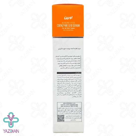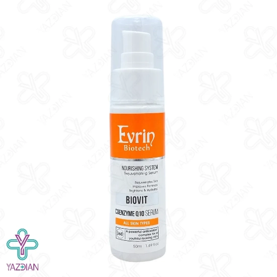 سرم تغذیه کننده پوست کیوتن بایوویت اورین - 50 میلی لیتر (Evrin Biovit Coenzyme Q10 Serum 50ml) حاصل شرکت محبوب آرا درفام آرمین می باشد که جهت آبرسانی و تغذیه پوست تولید شده است. این سرم با بهره گیری از مقادیر بالایی از کوآنزیم Q10 عوامل آنتی اکسیدانی لازم جهت فعالیت های سلولی را تنظیم می کند. بعلاوه از پوست در برابر اشعه UV و اکسیدان ایمن می سازد و حتی خواص ضد چروک نیز دارد
