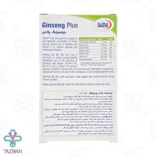 قرص جینسینگ پلاس یوروویتال (Ginseng plus eurho vital tablets ) دارای ترکیبات موثری است که موجب تقویت میل و قوای جنسی در آقایان و خانم ها شده و هم چنین سطح انرژی را افزایش می دهد و ضمن بهبود عملکرد ذهنی سیستم ایمنی را نیز تقویت می کند این محصول موجب بهبود گردش خون و کاهش استرس در آقایان شده و افرادی که فعالیت های روزانه و ورزشی انجام می دهند با مصرف این محصول دچار عملکرد بهتر و افزایش استقامت می شوند قرص جینسینگ همانطور که از نامش پیداست دارای عصاره گیاه جینسینگ می باشد که خواص آنتی اکسیدانی و ضد التهابی داشته و موجب کاهش بروز بیماری های مزمن می شود این گیاه هم چنین دارای خواص ضد باکتری، ضد قارچ و ضد ویروس می باشد و با بهبود عملکردهای مغز بر خلق و خو و حافظه تاثیر به سزایی داشته و با افزتیش گردش خون در آلت تناسلی موجب رفع اختلال نعوظ می شود و ضمن کاهش خطر ابتلا به برخی سرطان ها موجب کاهش خستگی و افزایش سطح انرژی می شود، ویتامین های گروه B موجود در این محصول نیز موجب تولید انرژی و حفظ سلامت سلول های عصبی می شود و ویتامین C نیز از دیگر ترکیبات موجود در این محصول می باشد که موجب افزایش فعالیت آنزیم های آنتی اکسیدانی شده و سیستم ایمنی را تقویت می کند.