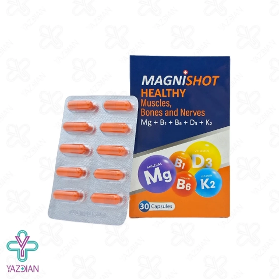کپسول مگنی شات گسترش میلاد فارمد (GMP MagiShot 30 Capsules) نقش بسیار مهمی در حفظ و افزایش میزان سلامت عصبی و عضلانی دارد.