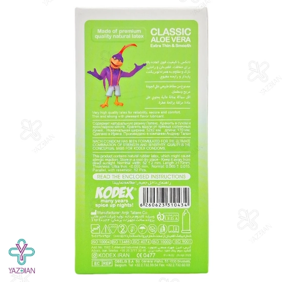 کاندوم نازک کلاسیک آلوئه ورا کدکس - 12 عددی