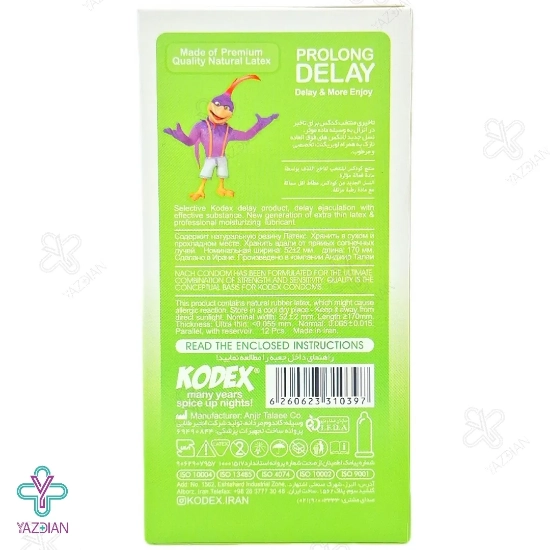کاندوم تاخیری کدکس (Kodex delayed condoms - 12 Pcs) مانع از انزال زود رس در آقایان شده و در نتیجه سبب طولانی تر شدن رابطه ی جنسی و ایجاد رضایت بین دو طرف رابطه می شود. هم چنین با استفاده ی درست، از بارداری ناخواسته و انتقال بیماری های مقاربتی و عفونت هم جلوگیری می شود.