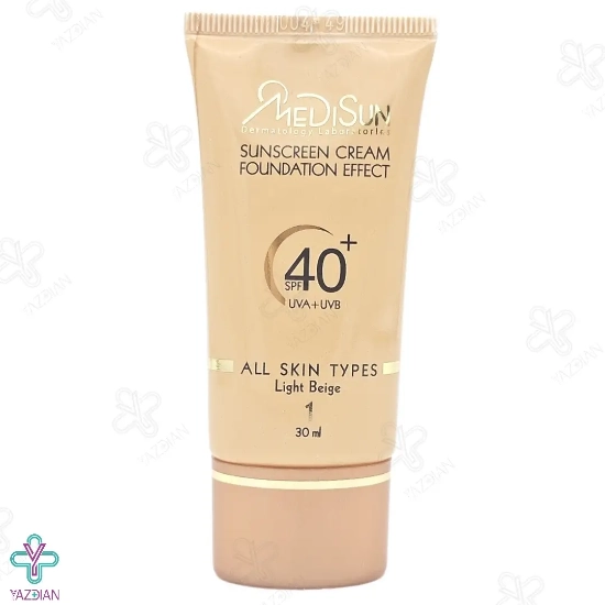 کرم ضد آفتاب SPF 40 مدیسان با پوشش کرم پودر مناسب انواع پوست - بژ روشن