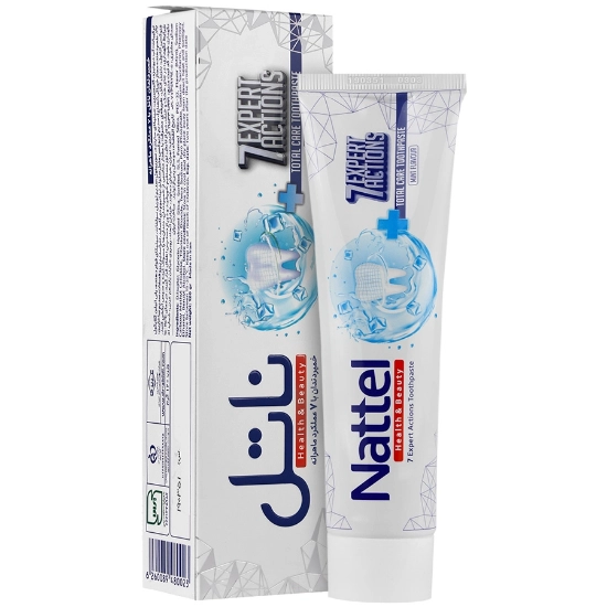 خمیر دندان کامل هفت کاره ناتل (Natel complete seven - function toothpaste - 65 gr) یک محصول بهداشتی مراقبتی دهان و دندان می باشد که از دندان ها و لثه های شما محافظت می کند و موجب حذف پلاک های بین دندانی شده و از پوسیدگی دندان ها پیش گیری می کند این محصول با ترکیبات موثری که دارد ضمن تثبیت لایه خارجی مینای دندان ها محیط دهان را نیز ضد عفونی می کند که در نتیجه موجب از بین رفتن بوی بد دهان می شود و خمیر دندان ناتل دارای خاصیت ضد پلاک و جرم می باشد که بدون آن که به مینای دندان آسیب وراد کند موجب سفیدی دندان ها شده و زردی ایجاد شده در اثر مصرف قهوه و چای را برطرف می کند و 12 ساعت از دندان ها محافظت می کند.