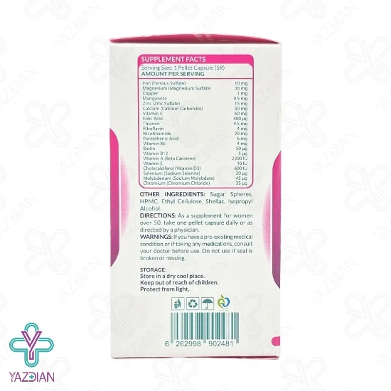 این محصول مولتی ویتامین مورد نیاز بدن بانوان بالای 50 سال را تامین می کند.