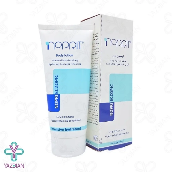 لوسیون بدن نوپری اگزوپیک نوپریت (Nopri Eczopic Noprit body lotion - 200 ml) دارای ترکیبات موثری است که مانع از خشکی پوست می شود و هم چنین موجب مرطوب کردن عمقی پوست شده و از ایجاد خارش و خشکی پوست جلوگیری می کند، در این محصول از روغن های گیاهی استفاده شده است که سرشار از ویتامین ها و مواد معدنی می باشد، روغن دانه کتان یکی از ترکیبات موجود در این محصول می باشد که سرشار از اسیدهای چرب امگا 9 و 6 می باشد و هم چنین دارای ویتامین B ، پتاسیم، منیزیم، فیبر، پروتئین و روی می باشد که موجب کاهش بثورات، التهاب و تحریک پوست شده و از ایجاد آکنه، جوش و اگزما نیز جلوگیری می کند و با تقویت سد دفاعی پوست موجب حفظ رطوبت پوست می شود و عصاره کالاندولا از دیگر ترکیبات موجود در این محصول بوده که دارای خاصیت ضد التهاب و ضد خارش می باشد و موجب رفع خارش شده و هم چنین در ترمیم بافت های سلولی نیز کمک می کند، عصاره آلوئه ورا موجود در این محصول موجب حفظ و تامین رطوبت پوست شده و از ایجاد چین وچروک جلوگیری می کند و ضمن رفع لک و تیرگی پوست موجب رفع التهاب، خشکی و خارش نیز می شود و هم چنین به روشن شدن پوست نیز کمک می کند.