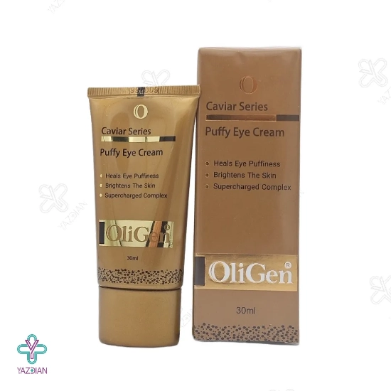 کرم ضد پف و تیرگی دور چشم خاویار الی ژن (Oligen Puffy Eye Cream – Caviar Series 30 ml) با دارا بودن ترکیبات مؤثری نظیر ویتامین های A، E و B5 به همراه عصاره های خاویار، شیرین بیان، گل آرنیکا، روغن جوانه گندم، روغن آرگان و ... در فرمولاسیون خود می تواند پوست را به خوبی تغذیه و تقویت نماید و ضمن از بین بردن پف و تیرگی ناحیه اطراف چشم، روند پیری پوست را نیز به تأخیر بیاندازد.