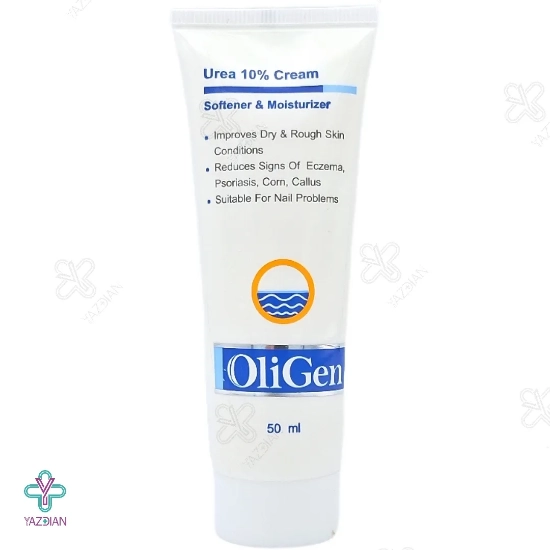 کرم مرطوب کننده اوره 10 درصد الی ژن (Oligen Urea 10% Cream – Softener & Moisturizer 50 ml) با دارا بودن ویتامین ها، عصاره های گیاهی و ماده مؤثره اوره در فرمولاسیون خود می تواند به عنوان یک مرطوب کننده و نرم کننده قوی، برای پوست های خشک و حساس مورد استفاده قرار گرفته و زبری، خشکی و ترک های پوستی را برطرف نماید. با استفاده از این محصول می توانید علائم بیماری هایی نظیر پسوریازیس، اگزما، پینه، میخچه و همچنین مشکلات ناخن و پوست اطراف آن را کاهش دهید.