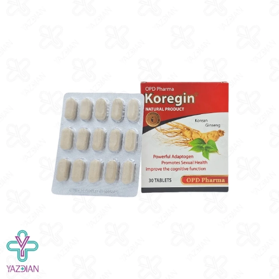 قرص جینسینگ کورجین او پی دی فارما (OPD pharma Koregin tablets – 30 pcs) سبب بهبود کارکرد شناختی مغز می شود، از دیگر ویژگی های این محصول این است که در آن از نمک، شکر، طعم دهنده و نگه دارنده به هیچ عنوان استفاده نشده است، این قرص هم چنین موجب افزایش میل جنسی، تقویت عملکرد جنسی و نیز بهبود ناتوانی های جنسی می شود، دقت داشته باشید تاثیرگذاری این محصول برای هر شخص امکان دارد تفاوت داشته باشد و طبق وضعیت سلامتی فرد مقدار مصرف و دیگر عوامل متغیر است، عصاره ی جینسینگ کره ای از ترکیبات به کار رفته در این قرص است که به عنوان یک تقویت کننده عمل کرده و باعث افزایش انرژی، سیستم ایمنی، بهبود کارکرد ذهن و کم شدن خستگی می شود، این گیاه به عنوان یک آداپتوژن به بدن کمک می کند تا به بهترین شکل ممکن با انواع اضطراب و استرس رو به رو شود.