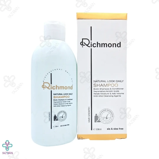 شامپو تقویت کننده و ضد ریزش روزانه حاوی بیوتین ریچموند (Shampoo Natural Look Daily Richmond Biotin 200 ml) یکی از محصولات بهداشتی است که به عنوان تقویت کننده ی مو و کم شدن ریزش مو تولید شده است.