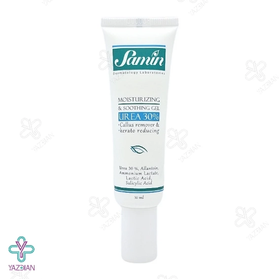 ژل مرطوب کننده قوی اوره 30 درصد ثمین (Samin Moisturizing and Soothing Gel Urea 30% 30 ml) خشکی و زبری به وجود آمده در پوست را درمان می کند. از دیگر ویژگی های این محصول این است که لایه های شاخی و فلسی ایجاد شده در پوست را رفع کرده و به مرور زمان مشکلات و ضایعات پوستی مثل میخچه و پینه و قسمت های ضخیم پوست را بهبود می بخشد. ژل مرطوب کننده ی ثمین را هم کودکان و هم افراد بزرگ سال به صورت روزانه می توانند مصرف کنند. این محصول هم چنین از به وجود آمدن التهاب در پوست نیز جلوگیری می کند.
