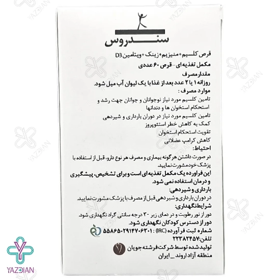 قرص کلسیم منیزیم زینک د3 سندروس - 60 عددی