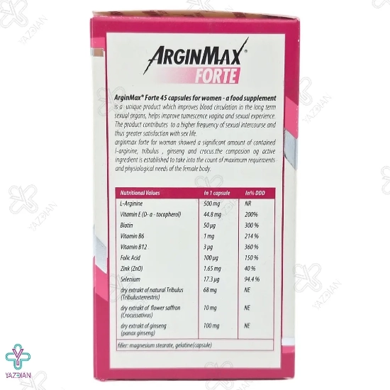 کپسول آرژین مکس فورت بانوان سیمپلی یو (Simple You Arginmax Forte For Women 45 Caps) با هدف تقویت قوای جنسی زنان و تحریک بانوان تهیه شده است و می تواند کیفیت رابطه جنسی را بهبود ببخشد.