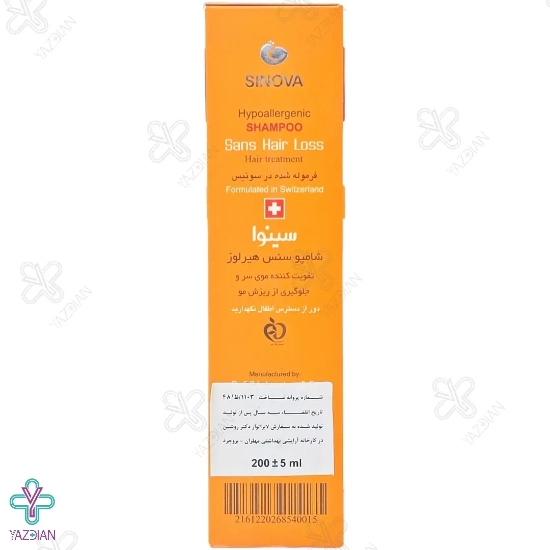 شامپو تقویت کننده و ضد ریزش سینوا (Sinova Sans Hair Loss Shampoo 200 ml) با دارا بودن فرمولاسیونی جدید و مؤثر می تواند موها را به خوبی تقویت کرده و ریزش موها را کنترل و درمان نماید.