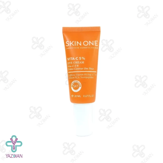 کرم دور چشم ویتامین ث 5 درصد اسکین وان (Skin One Vita C5 Eye Cream 20ML) از پیری زود رس پوست جلوگیری می کند. این محصول با ترکیباتی که در خود دارد، تیرگی و پف، چین و چروک و لکه های تیره ی دور چشم را کم می کند.